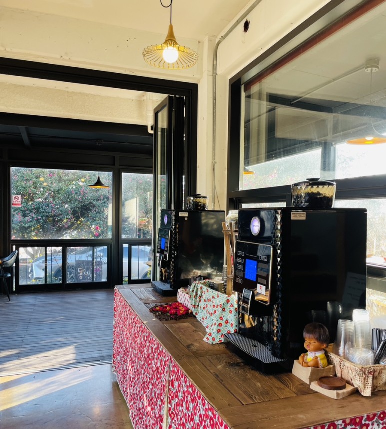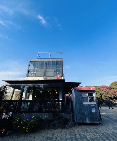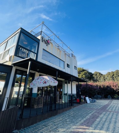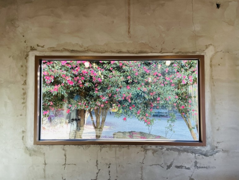 2층인 카페 건물과 넓은 마당, 동백꽃을 마음껏 구경하고 사진까지 찍을 수 있는 야외 정원으로 이루어져 있어요.
