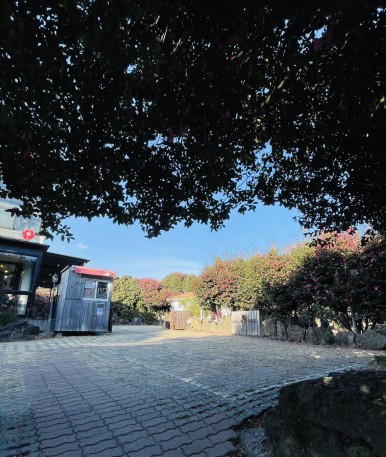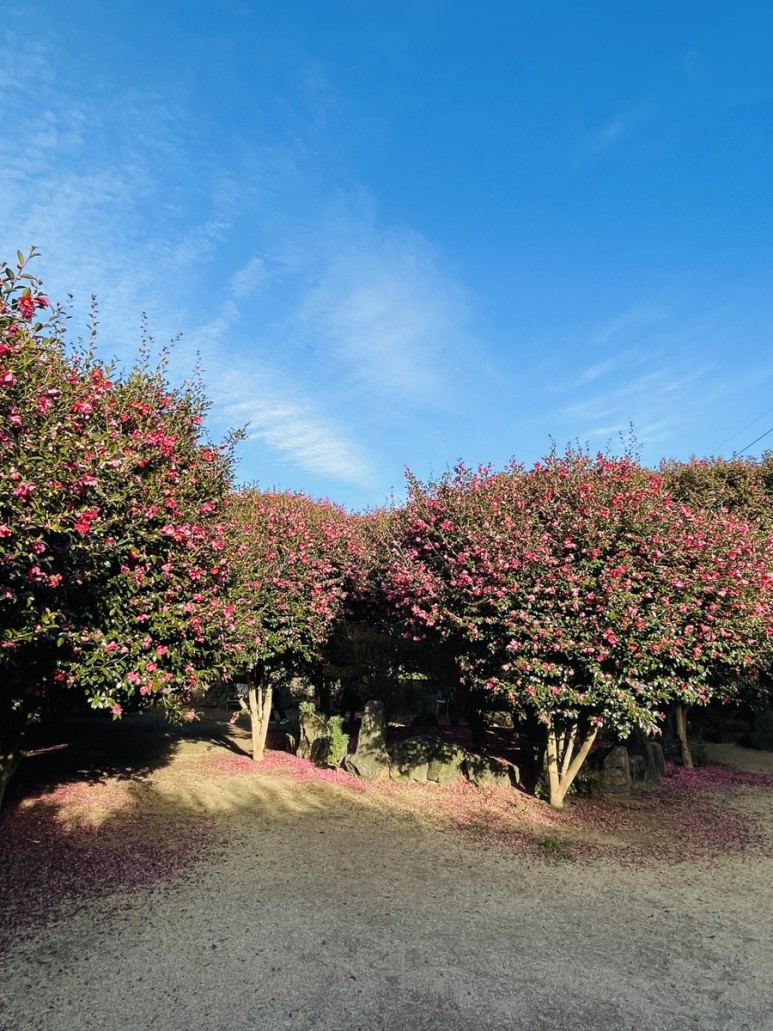 아주 넓진 않지만 입구에 주차구역 있으니 참고하세요. 주차구역에서부터 붉게 물든 동백꽃을 볼 수 있답니다.