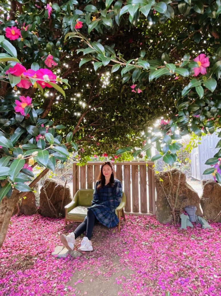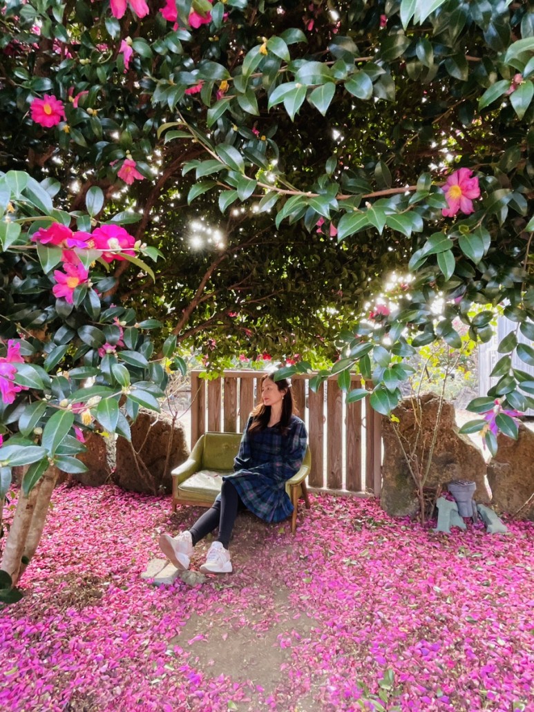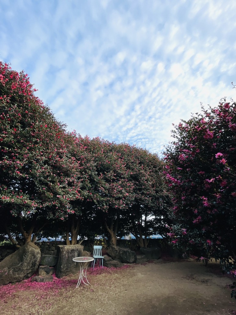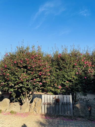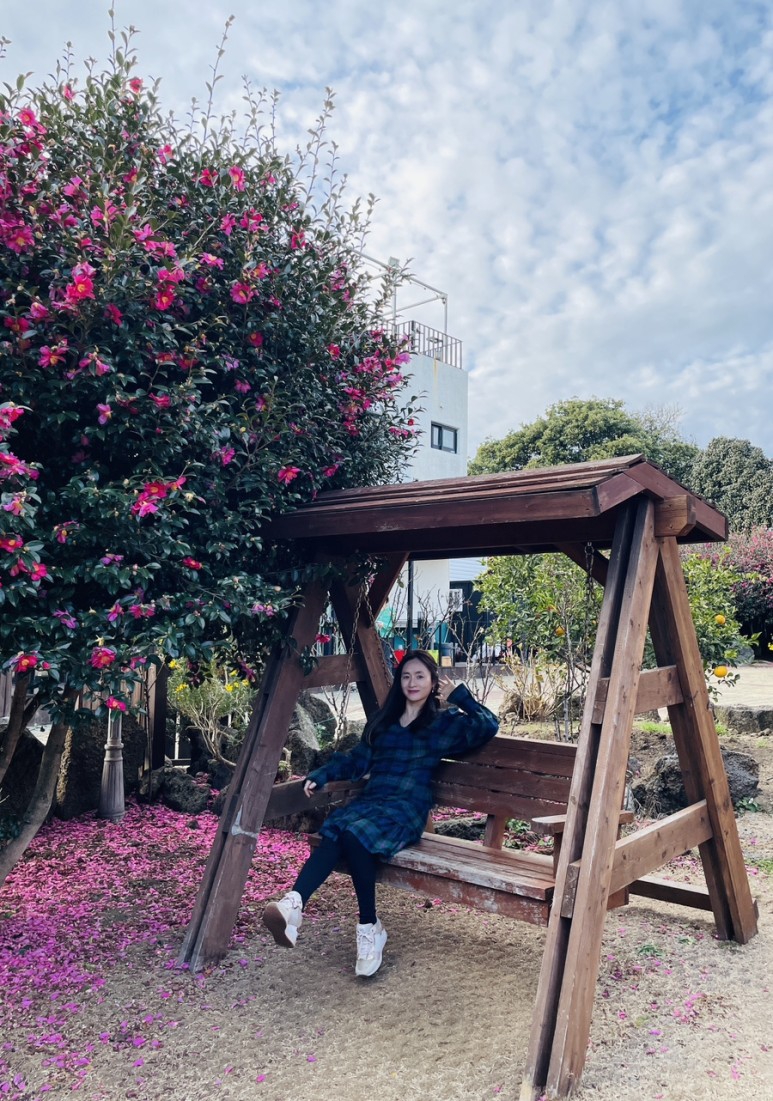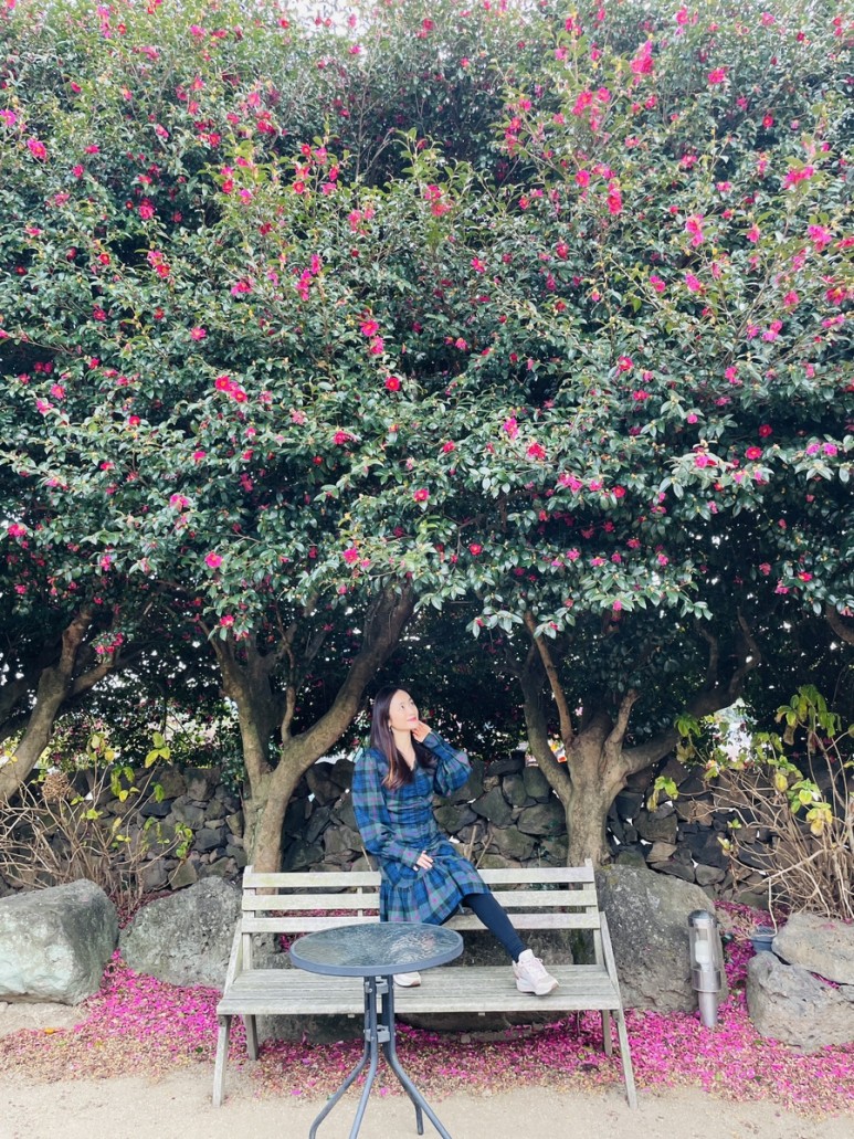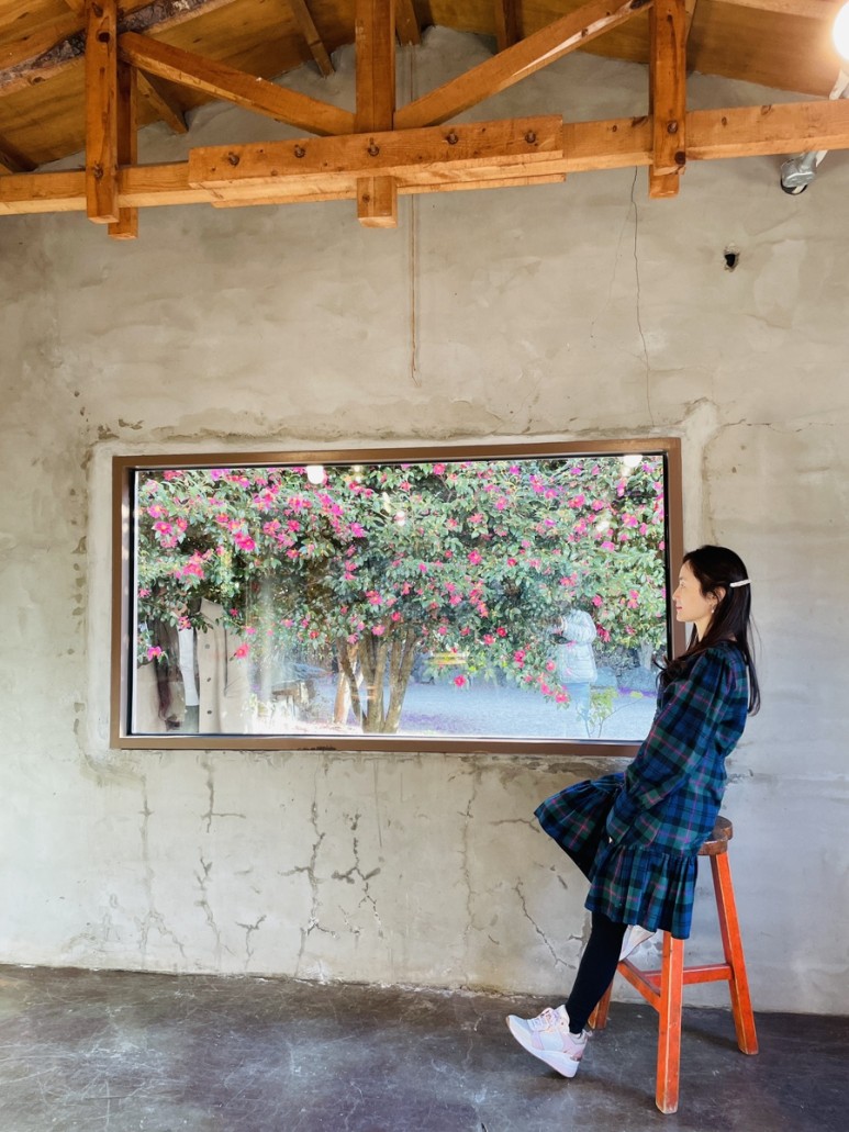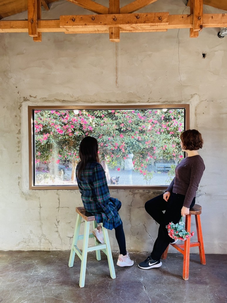 예쁜 동백꽃 포토존이 있는 위미리 카페