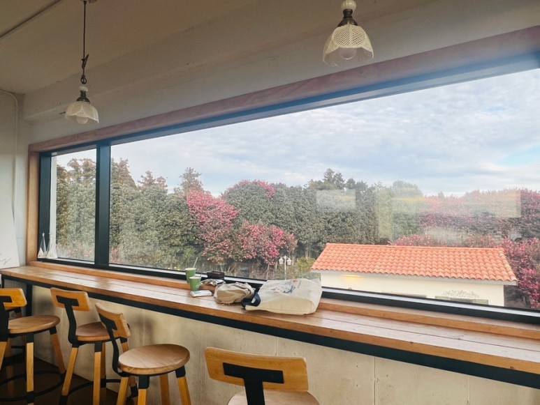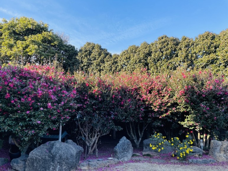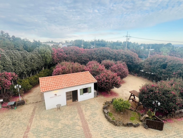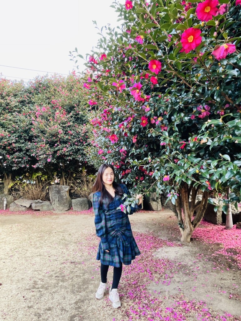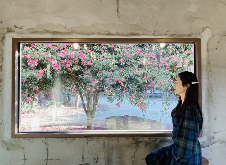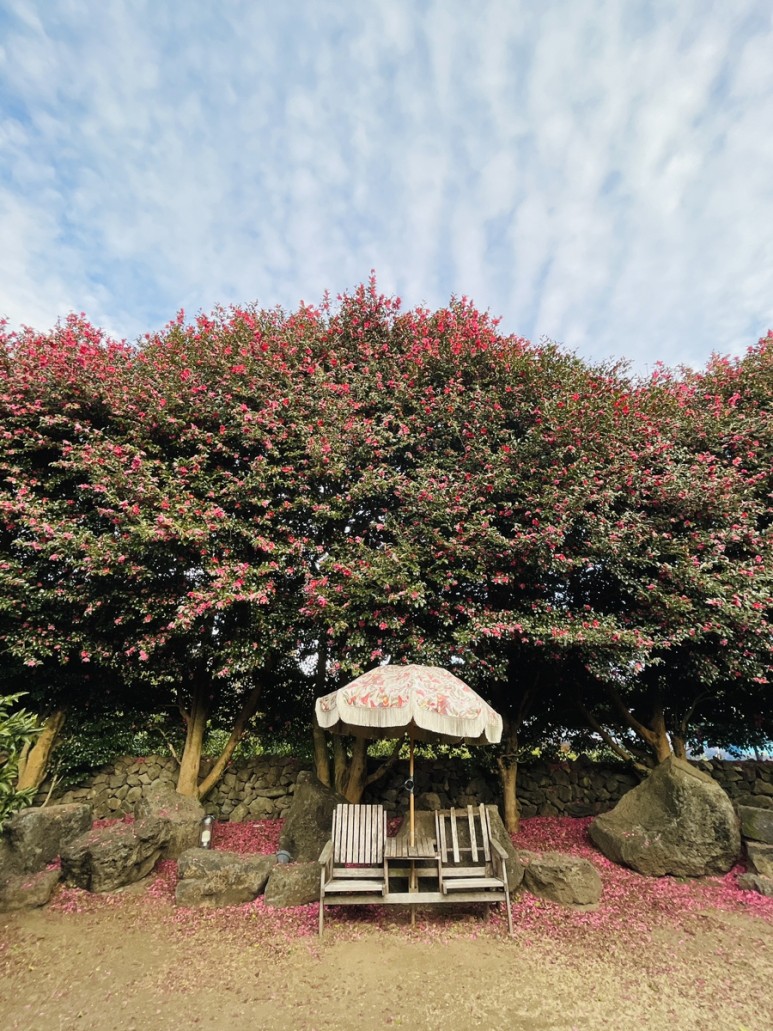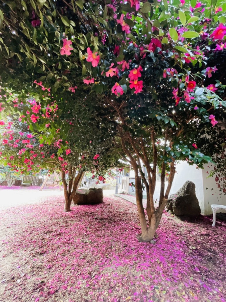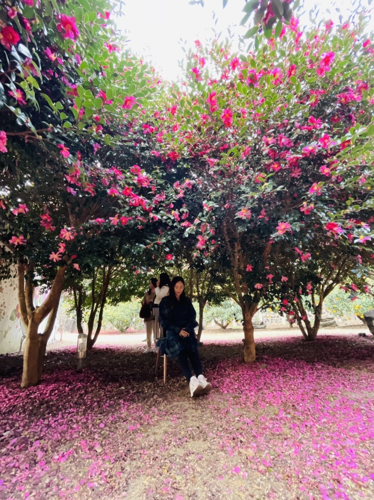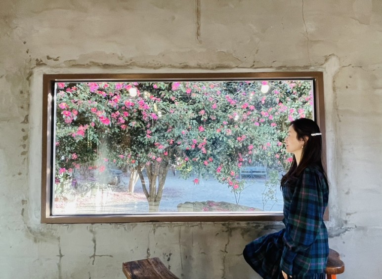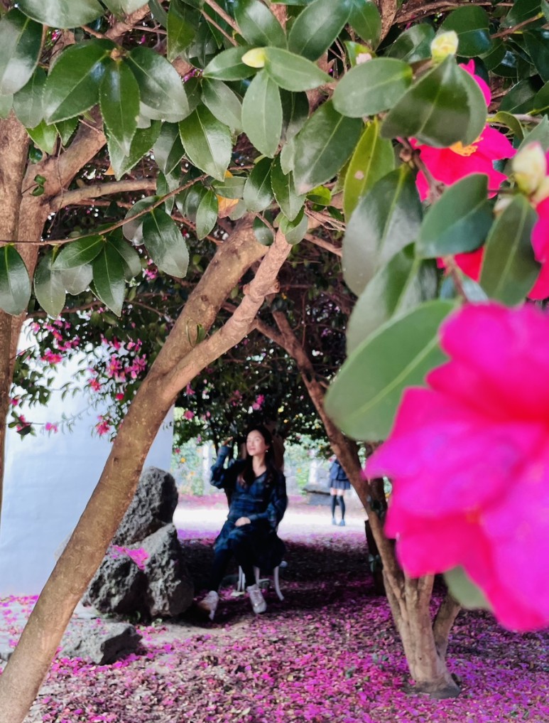 예쁜 동백꽃 포토존이 있는 위미리 카페