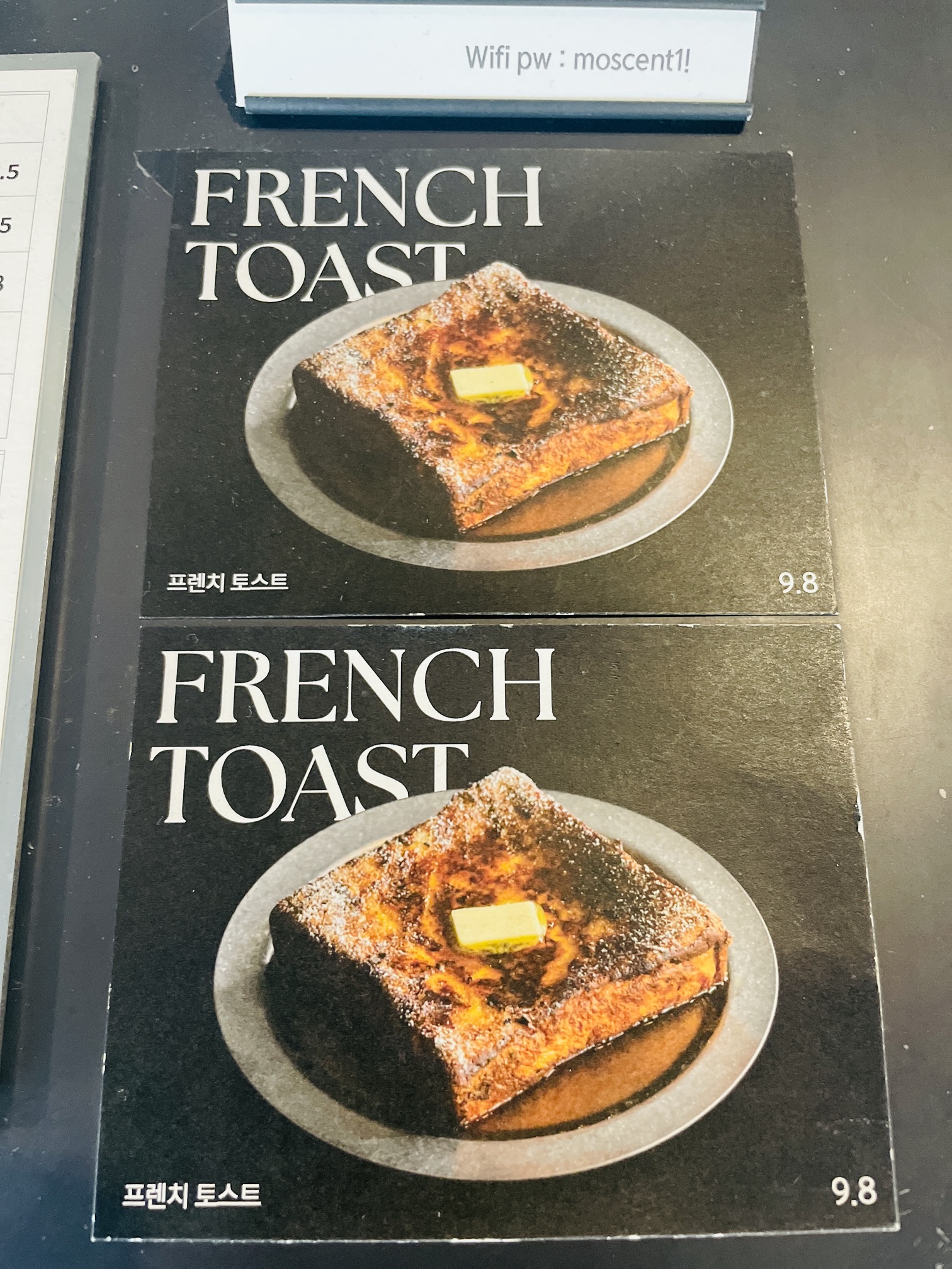 프렌치 토스트와 함께 커피 한 잔이면 완벽한 조합이겠죠! 우리는 점심을 먹어서 다음에 먹기로 했답니다.