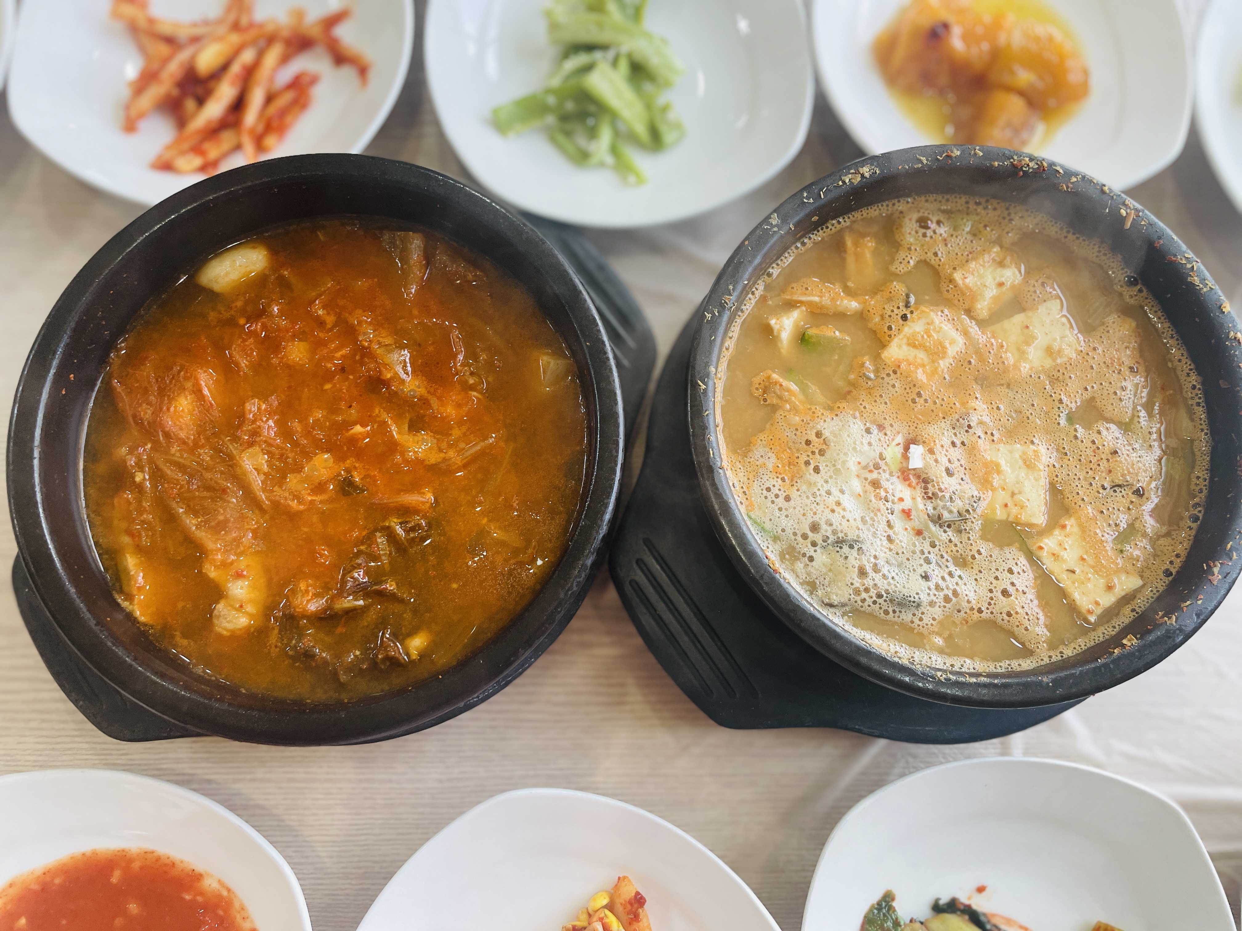 김치찌개, 청국장찌개, 계란찜, 고등어구이 등
