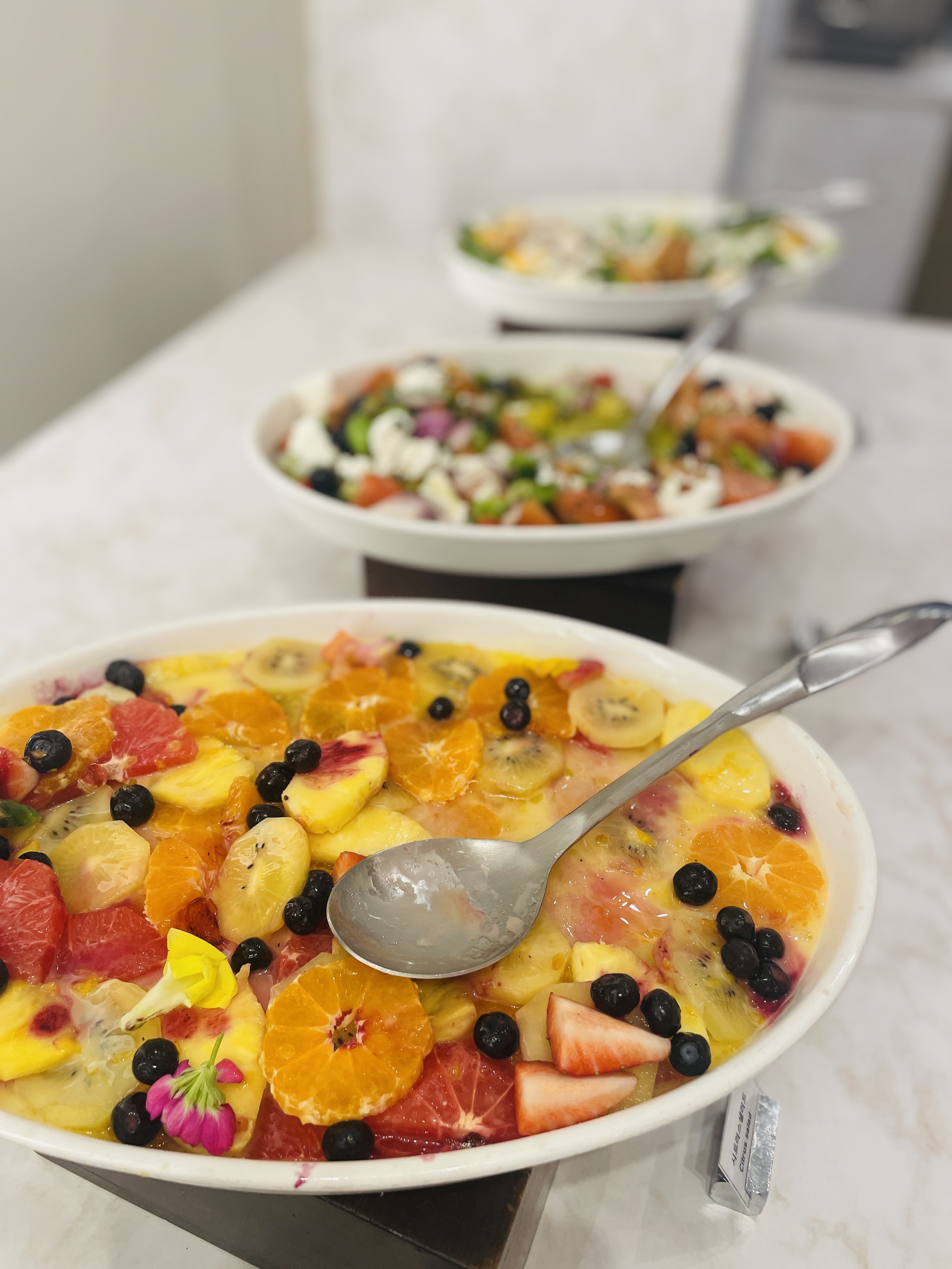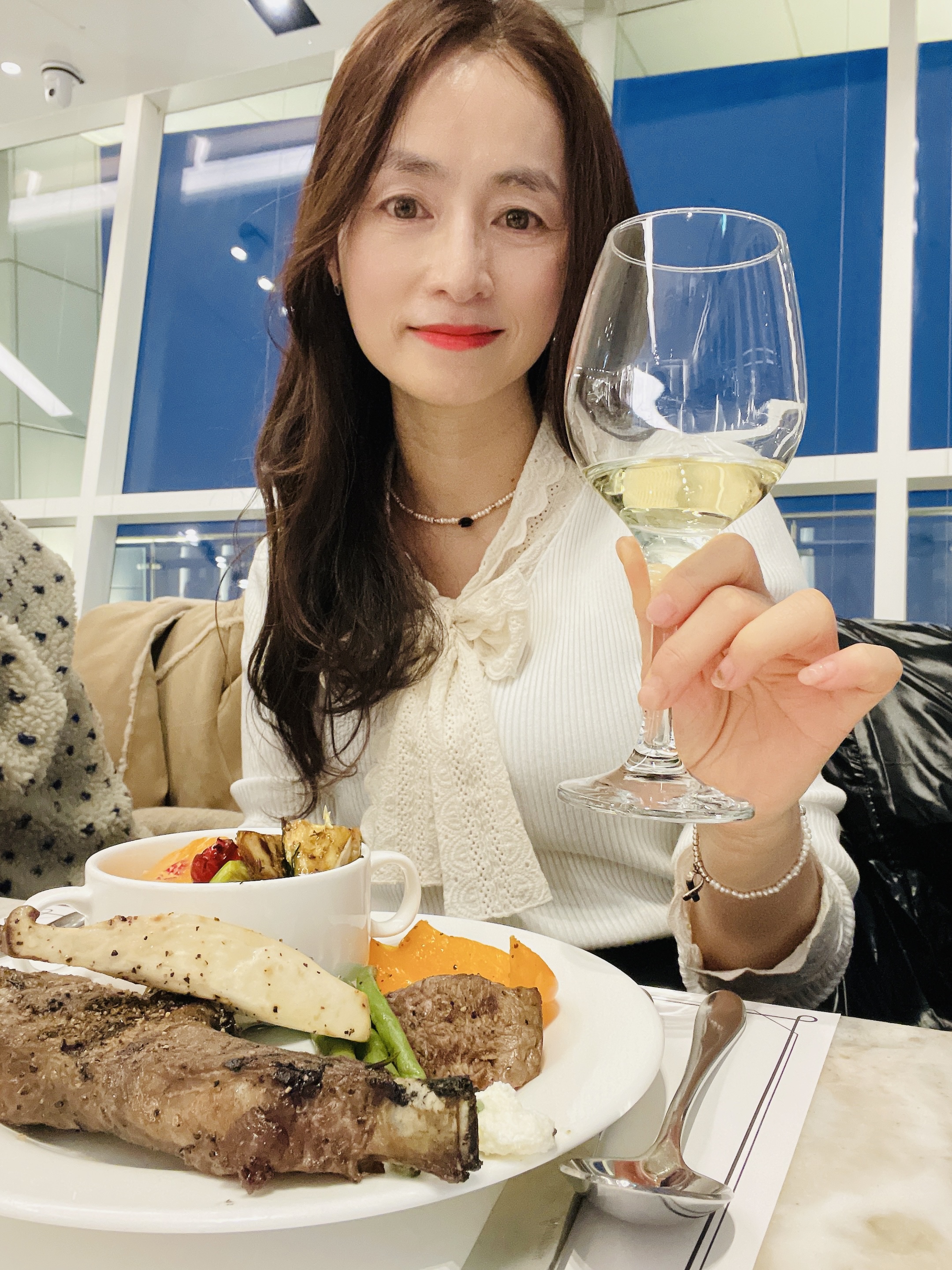 디저트 코너도 알차게 구성되어 있어요. 제철 과일인 딸기가 정말 달콤하고 맛있었어요. 화이트 와인과 함께 즐기니 더욱 근사한 저녁 식사가 되었어요.