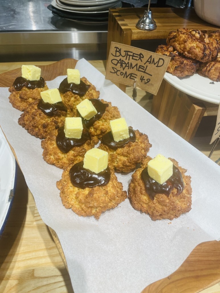 버터와 카라멜이 토핑된 스콘도 너무 먹음직스러워 보입니다.