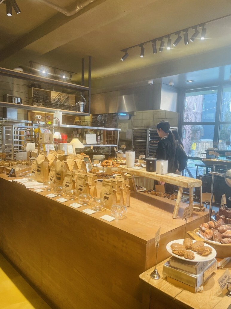 입구를 들어서면 오른쪽에는 다양한 종류의 빵들이 전시되어 있습니다. 양재천 카페거리의 베이커리 전문 카페답습니다.