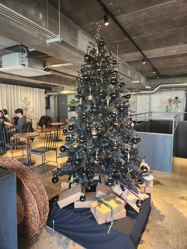 대형 크리스마스 트리가 너무 멋져서 반해버렸어요. 지금까지 다양한 종류를 트리를 봐왔지만, 블랙 컬러의 오너먼트는 처음 만났답니다.