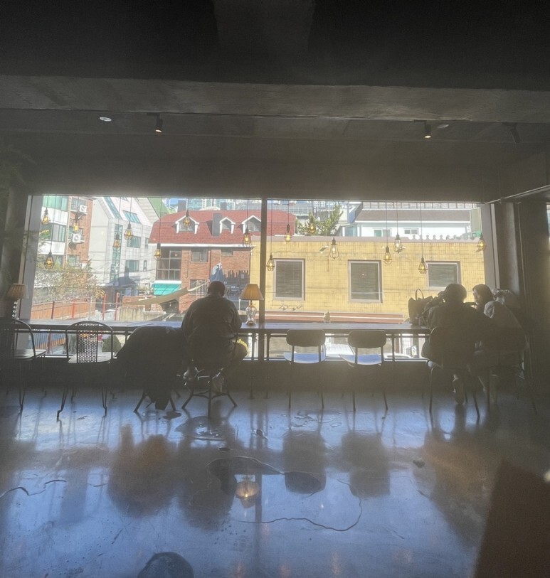 저희는 창가에 자리를 잡고 앉았어요. 점심을 빨리 먹고 와서인지 자리를 고를 수 있는 기회가 있었지만, 시간이 조금 지나자 카페 좌석이 만석이었답니다.