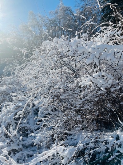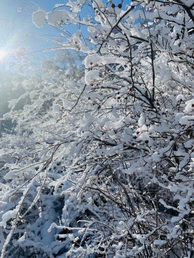 햇살에 비친 하얀 눈꽃이 영롱하게 빛나고 있었습니다. 너무 아름다웠는데 사진에는 다 담기지 않아요.