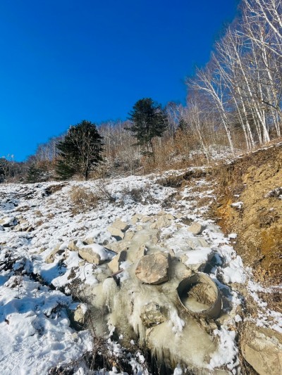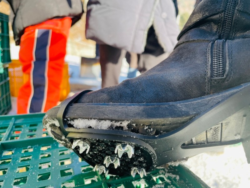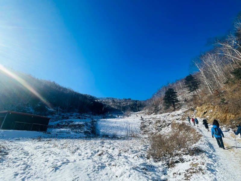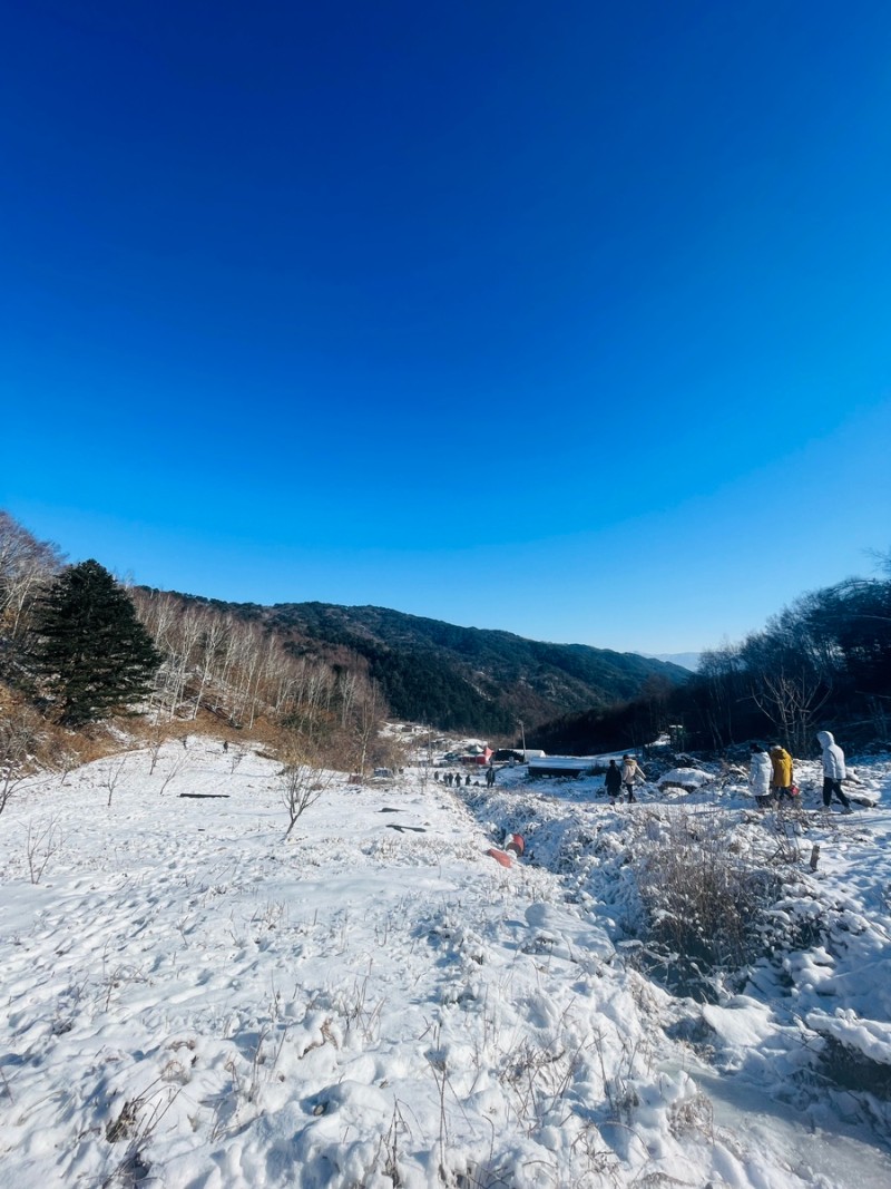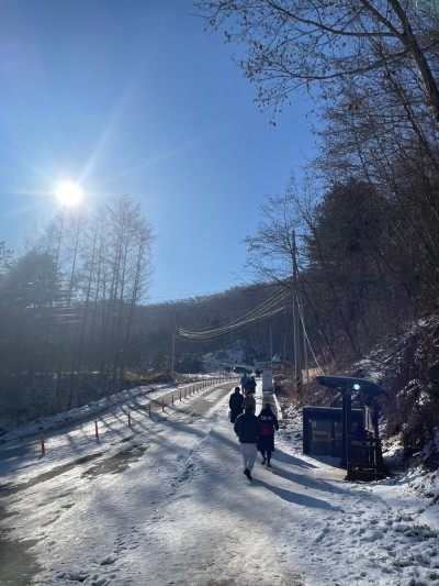 아쉬운 마음에 입구라도 보자며 오르막길을 올라가보니 개인 사유지를 개방 하고 있었습니다. 무료로 개방해 주셨고, 다만 아이젠을 구입하는 것이 입장 조건이었습니다. 금액은 5000원이었는데 친절하게 착용까지 도와 주셨습니다.