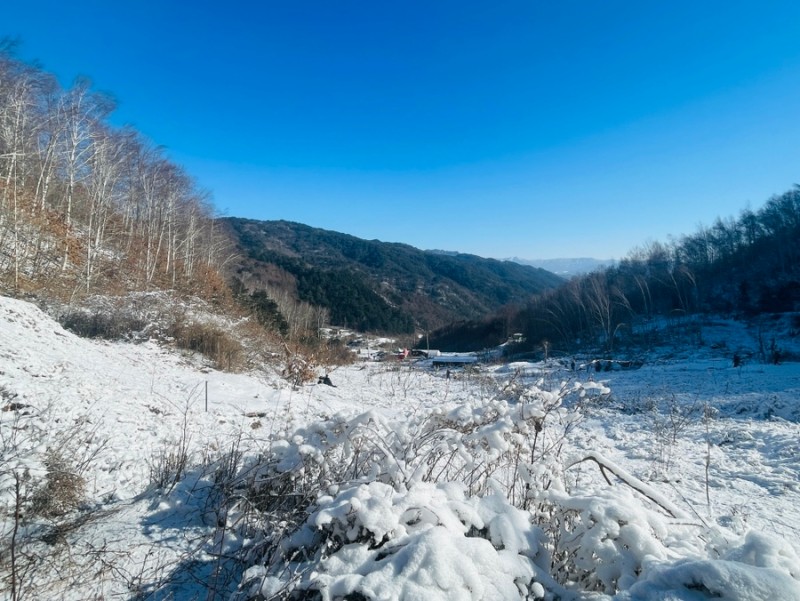 최근에 눈이 많이 와서인지 하얀 눈이 많이 쌓여 있었고 파란 하늘과 함께 제 눈이 시원해 지는 느낌이었습니다.